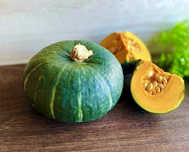 丸ごとのカボチャは風通しの良い場所で常温保存ができるので、使いたいタイミングに合わせて管理できますね。